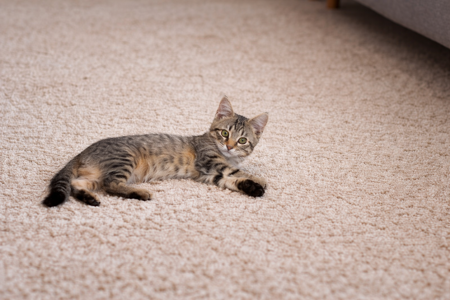 Pet accidents can soak through multiple layers of carpet or upholstery and start to cause bacteria growth if untreated. The sooner we treat it, the better the results. Our process is designed to target the source of the odor—cleaning, sanitizing, and protecting the fibers. Keep in mind, if pet urine has been left for a long time, it may cause permanent staining or damage.